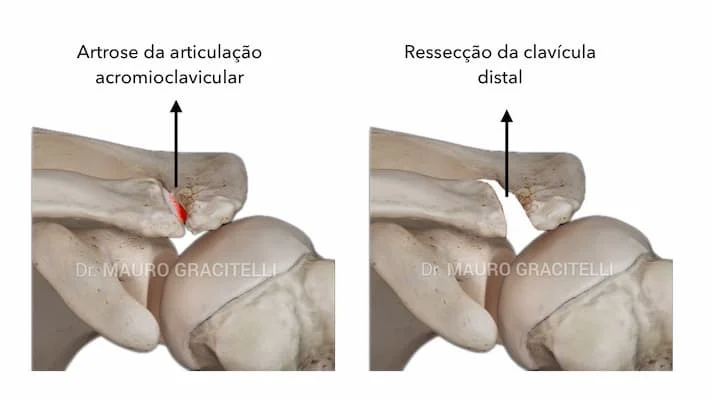 Alguns pacientes possuem artrose dolorosa da clavícula. Nesses casos pode ser necessária a raspagem de parte desse osso para diminuir a dor. Também é chamada de procedimento de Mumford. O vídeo acima demonstra esse procedimento realizado por artroscopia.