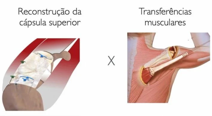 - Transposição do bíceps (reconstrução da cápsula superior com o tendão do bíceps): é uma técnica eficaz e prática para melhorar a funcionalidade do ombro e reduzir a dor. Consiste em fixar a parte distal do tendão em uma região medial do tubérculo maior, oferecendo bons resultados clínicos.